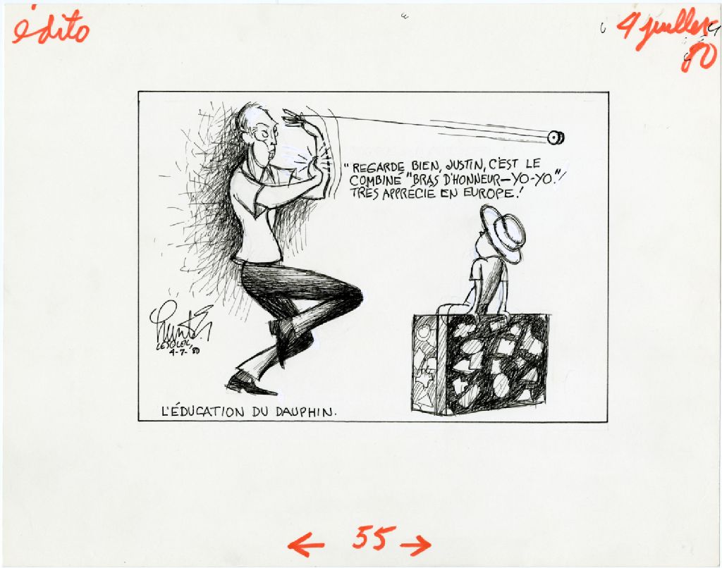 L'éducation du dauphin. «Regarde bien, Justin, c'est le combiné «bras d'honneur - yoyo» très apprécié en Europe!»