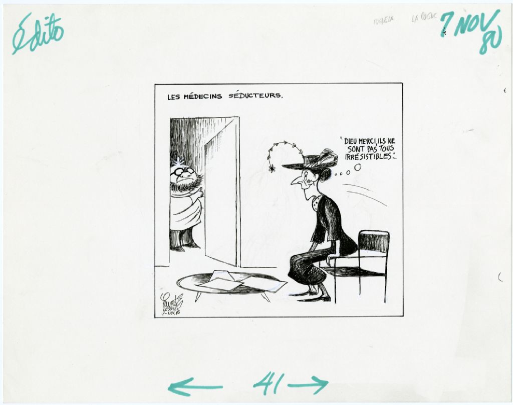 Les médecins séducteurs. «Dieu merci, ils ne sont pas tous irrésistibles...», 7 novembre 1980, Archives nationales à Québec, Fonds Raoul Hunter, (03Q,P716,S1,P80-11-07), Raoul Hunter.