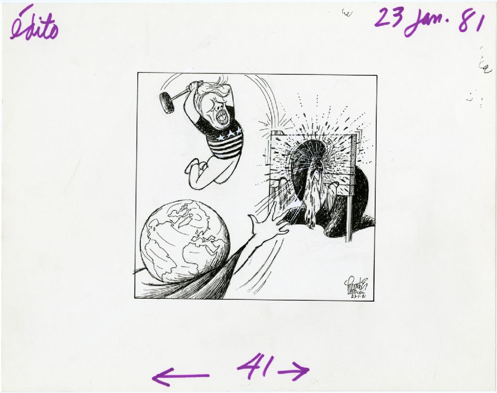 [Jimmy Carter frappe avec une mass sur la tête d'un homme iranien]