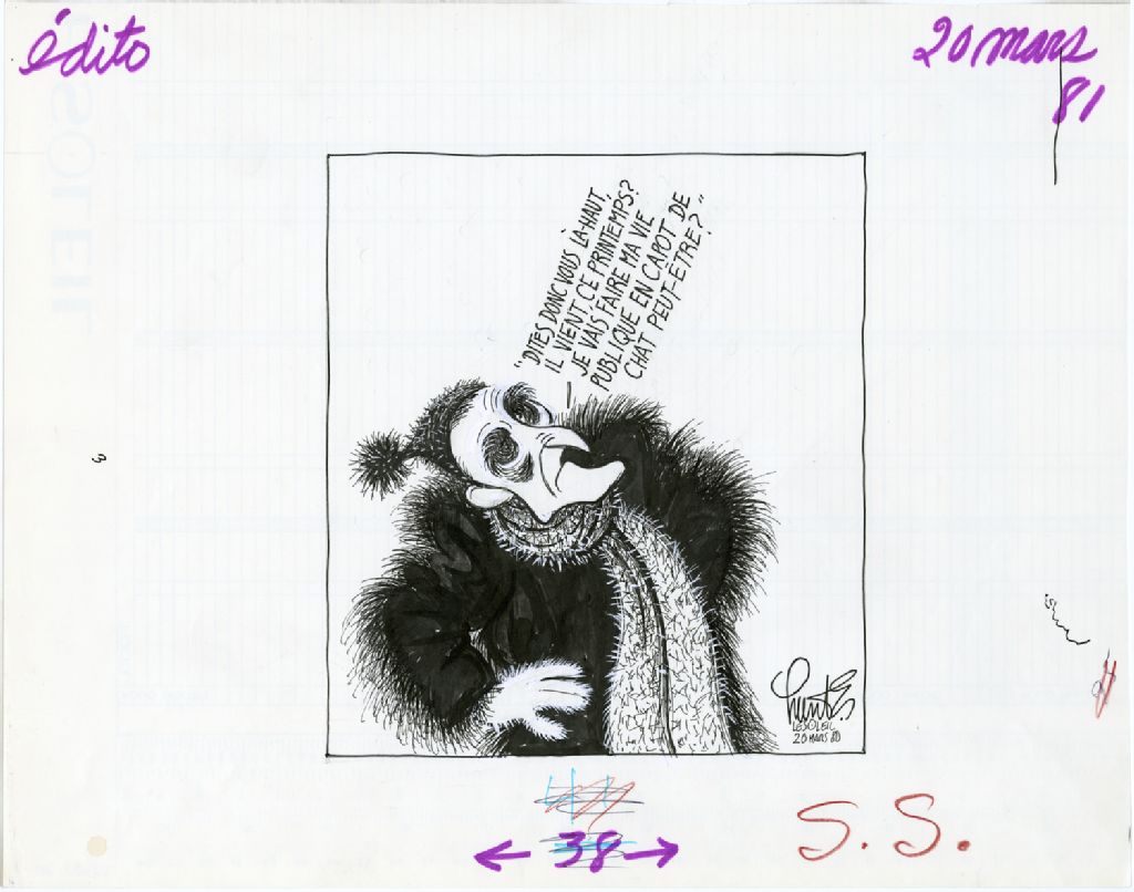 «Dites donc vous là-haut, il vient ce printemps? Je vais faire ma vie publique en capot de chat peut-être?», 20 mars 1981, Archives nationales à Québec, Fonds Raoul Hunter, (03Q,P716,S1,P81-03-20-1), Raoul Hunter.