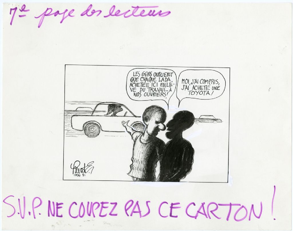 «Les gens oublient que chaque Lada achetée ici enlève du travail à nos ouvriers!» «Moi j'ai compris, j'ai achté une Toyota!»