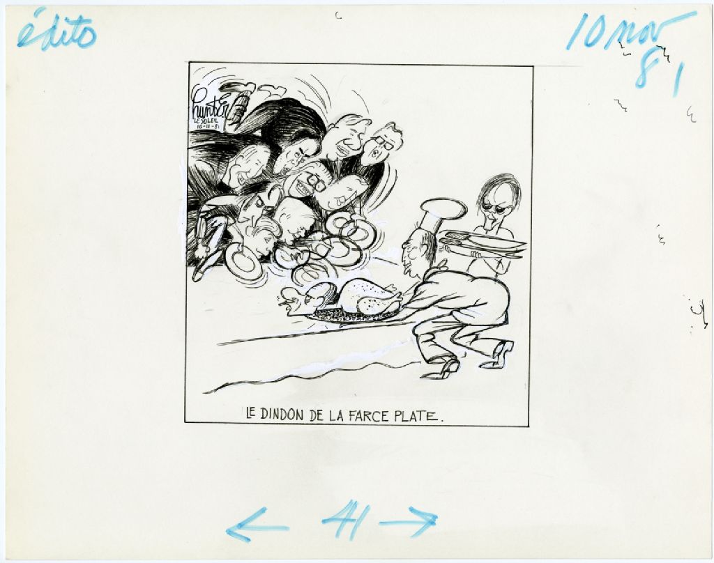 Le dindon de la farce plate, 10 novembre 1981, Archives nationales à Québec, Fonds Raoul Hunter, (03Q,P716,S1,P81-11-10), Raoul Hunter.