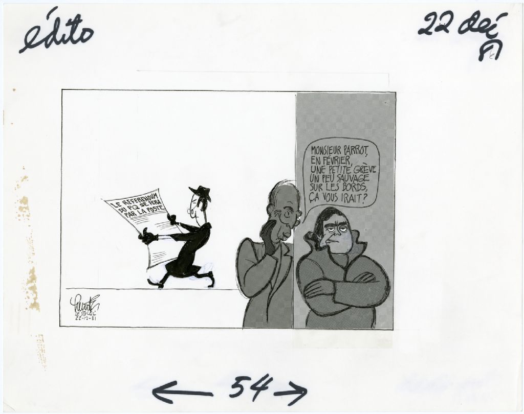Le référendum du PQ se fera par la poste. «Monsieur Parrot, en février, une petite grève un peu sauvage sur les bords, ça vous irait?»