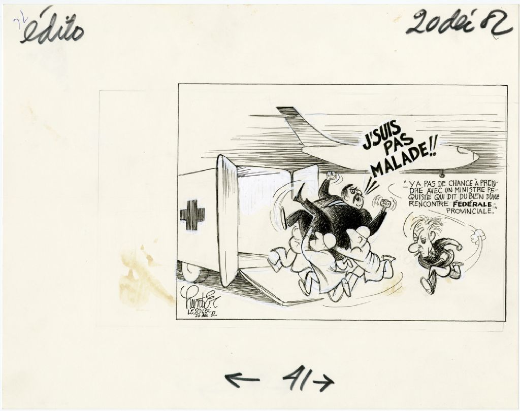 «J'suis pas malade!» «Y a pas de chance à prendre avec un ministre péquiste qui dit du bien d'une rencontre fédérale-provinciale.»