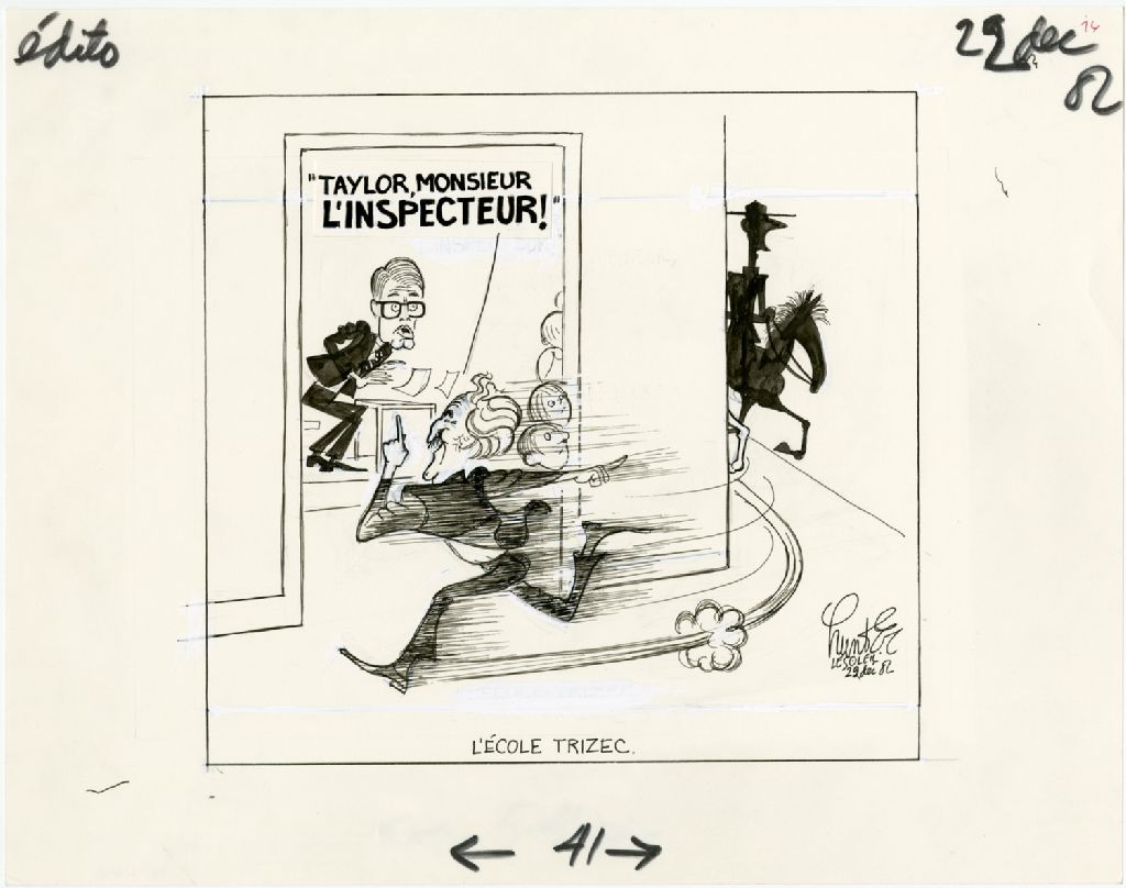 L'école Trizec. «Taylor, monsieur l'inspecteur!», 22 décembre 1982, Archives nationales à Québec, Fonds Raoul Hunter, (03Q,P716,S1,P82-12-22), Raoul Hunter.