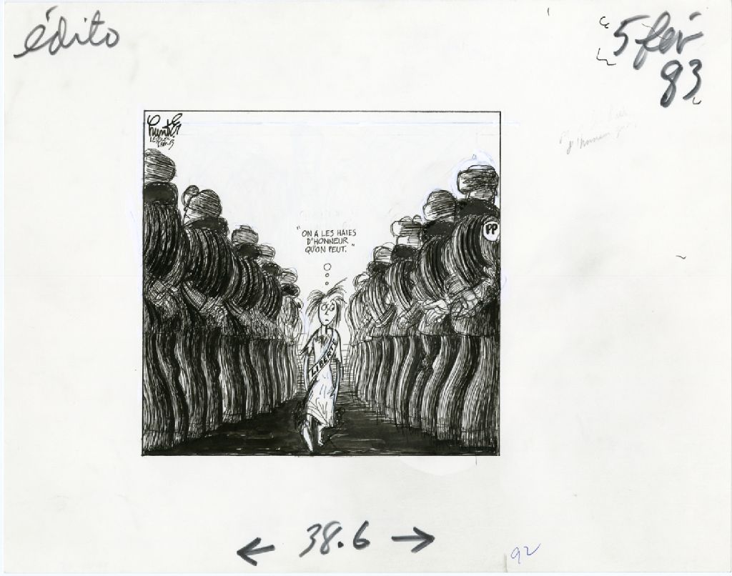 (On a les haies d'honneur qu'on peut), 5 février 1983, Archives nationales à Québec, Fonds Raoul Hunter, (03Q,P716,S1,P83-02-05), Raoul Hunter.