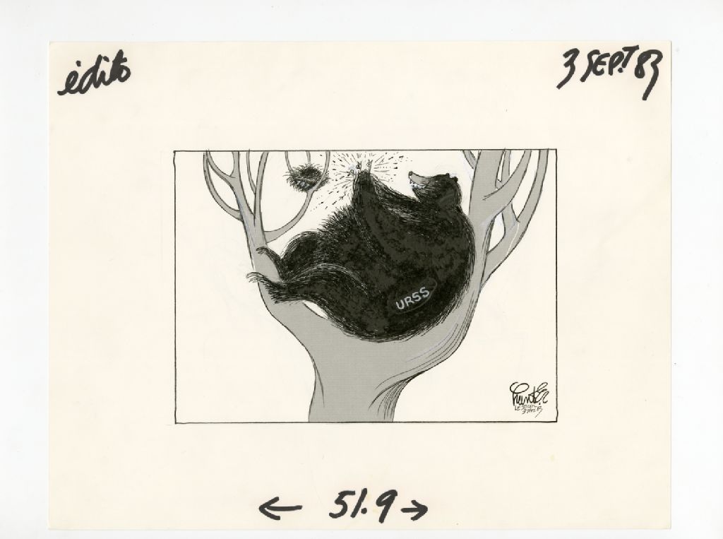 [Un ours dans un arbre où on peut lire U.R.S.S.]