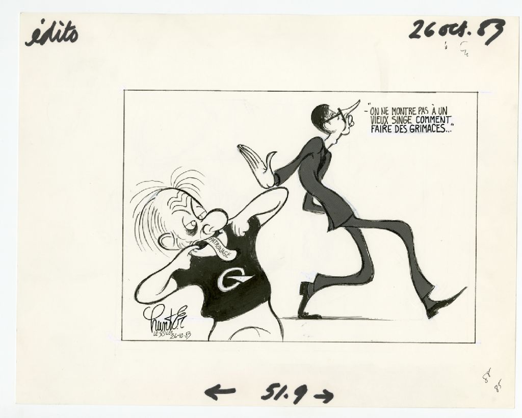 "On ne montre pas à un vieux singe comment faire des grimaces...", 26 octobre 1983, Archives nationales à Québec, Fonds Raoul Hunter, (03Q,P716,S1,P83-10-26), Raoul Hunter.