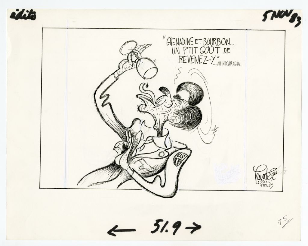 "Grenade et Bourbon... Un p'tit goût de revenez-y..." Au Nicaragua., 05 novembre 1983, Archives nationales à Québec, Fonds Raoul Hunter, (03Q,P716,S1,P83-11-05), Raoul Hunter.