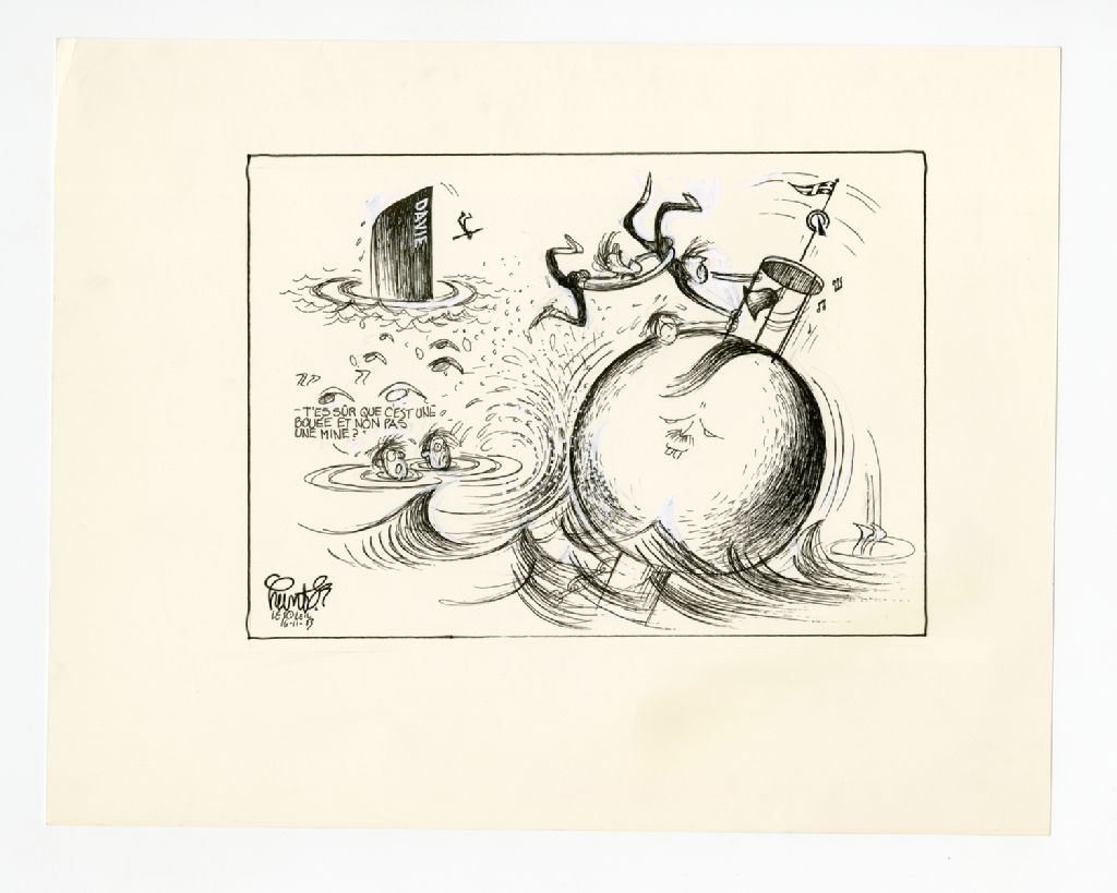 "T'es sûr que c'est une bouée et non pas une mine?", 16 novembre 1983, Archives nationales à Québec, Fonds Raoul Hunter, (03Q,P716,S1,P83-11-16-1), Raoul Hunter.