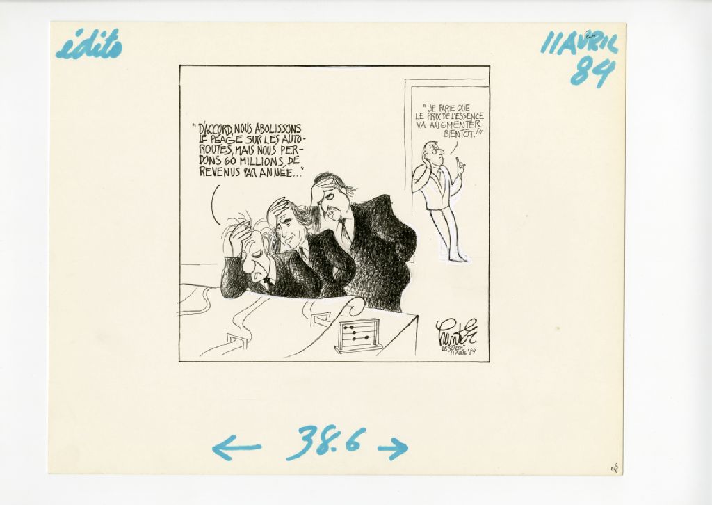 "D'accord, nous abolissons le péage sur les autoroutes, mais nous perdons 60 milions de revenus par année..." "Je parie que le prix de l'essence va augmenter bientôt!"