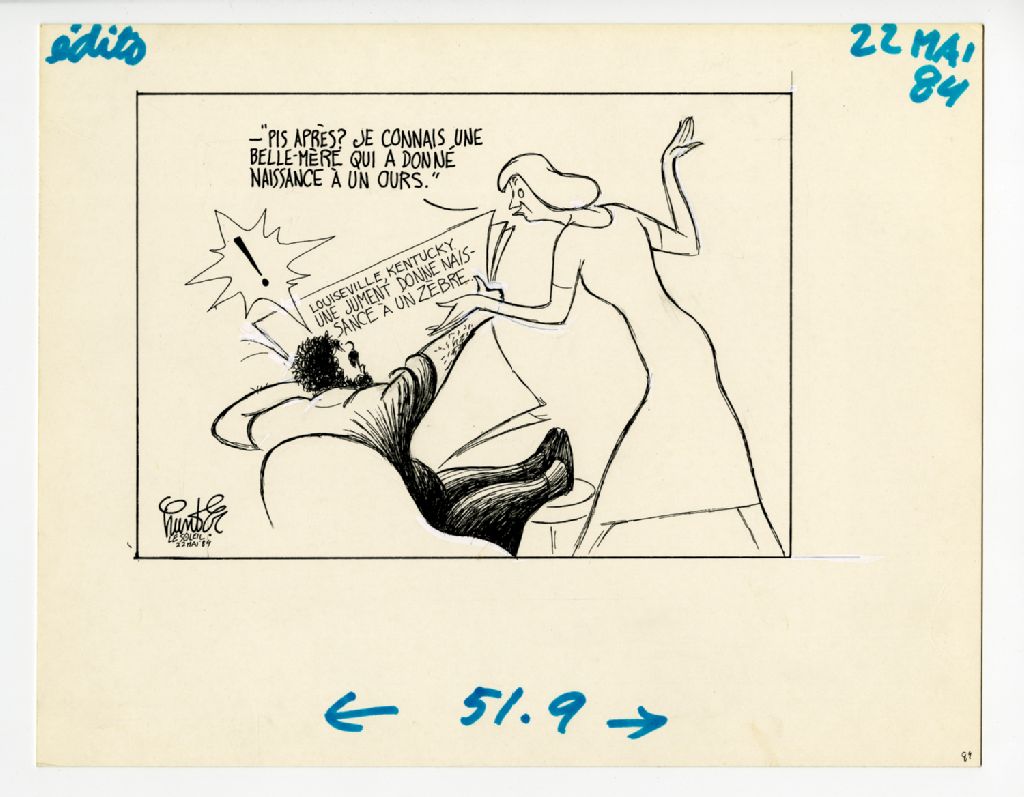 "Pis après? Je connais une belle-mère qui a donné naissance à un ours.", 22 mai 1984, Archives nationales à Québec, Fonds Raoul Hunter, (03Q,P716,S1,P84-05-22), Raoul Hunter.