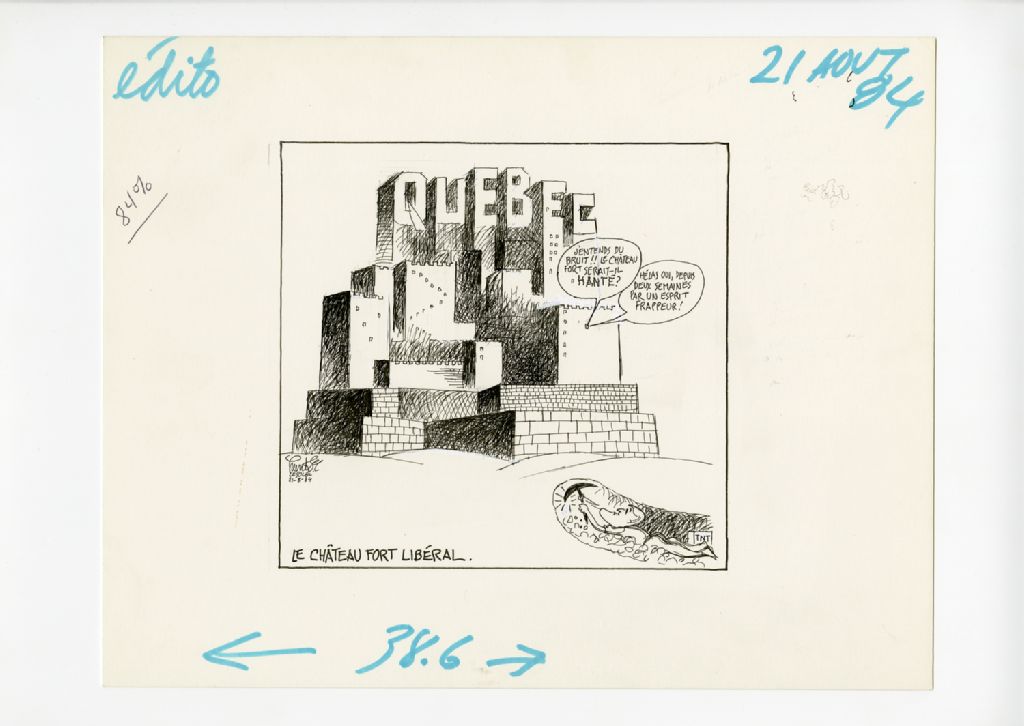 Le château fort libéral. "J'entends du bruit!! Le château fort serait-il hanté?" ""Hélas oui, depuis deux semaines par un esprit frappeur!"