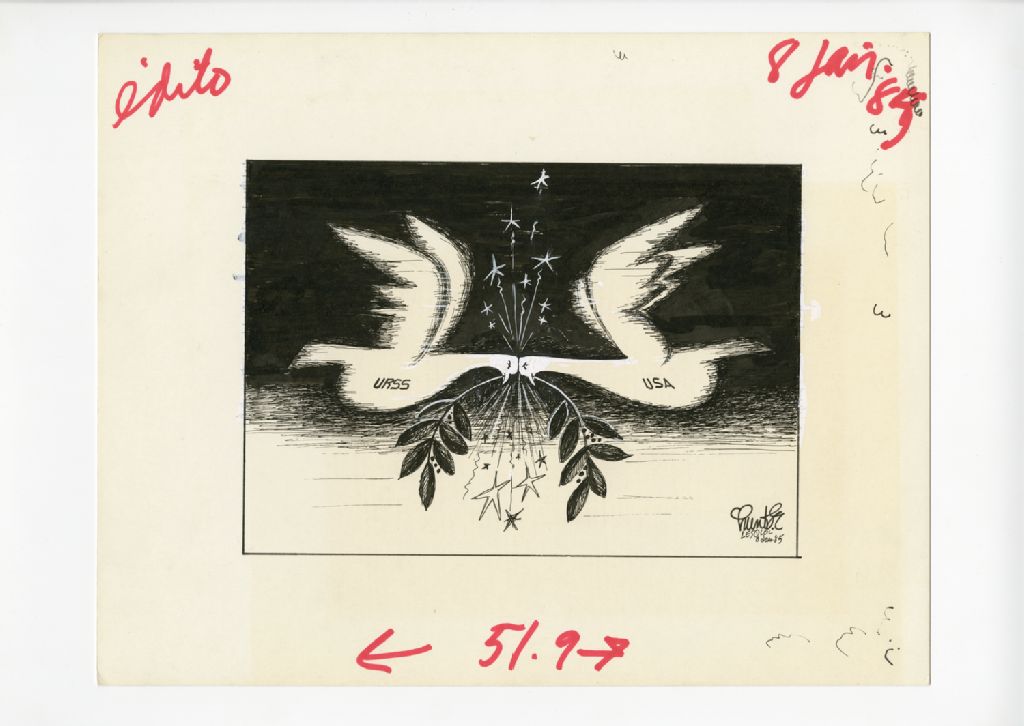 [Un colombe où il est écrit URSS et une USA entrent en collision]