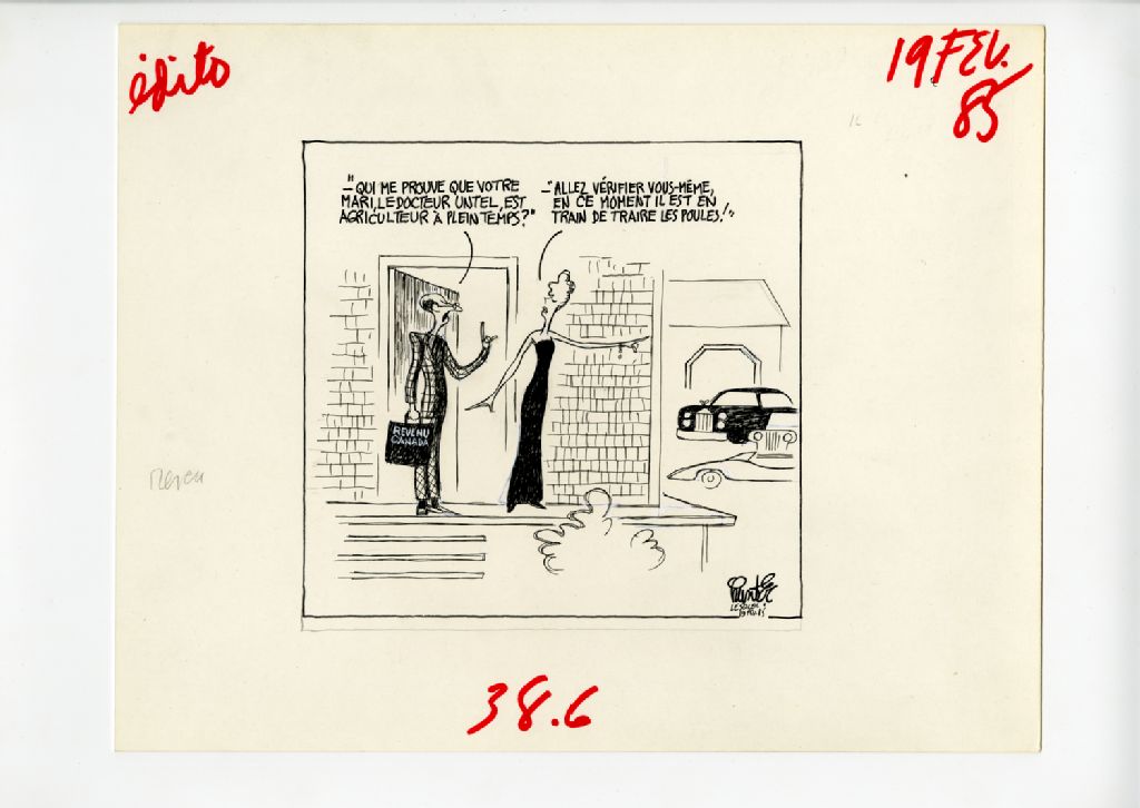 "Qui me prouve que votre mari, le docteur Untel, est agriculteur à plein temps?" "Allez vérifier vous-même, en ce moment il est en train de traire les poules!"