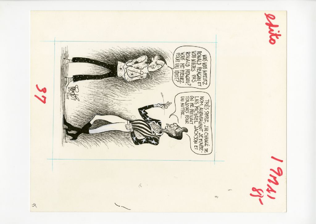 "Vous vous appelez Ronald Reagan et vous n'êtes pas Ronald Reagan? Vous me prenez pour un idiot?" "Très simple, j'ai changé de nom, aupravant je m'appelais Michael Jackson et on me prenait toujours pour un autre."