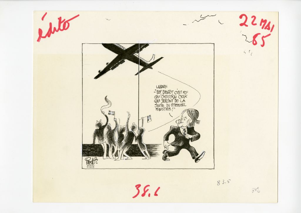 Landry: "Bof, bientôt c'est moi qui choisirai ceux quis eront de la suite du premier ministre!", 22 mai 1985, Archives nationales à Québec, Fonds Raoul Hunter, (03Q,P716,S1,P85-05-22), Raoul Hunter.