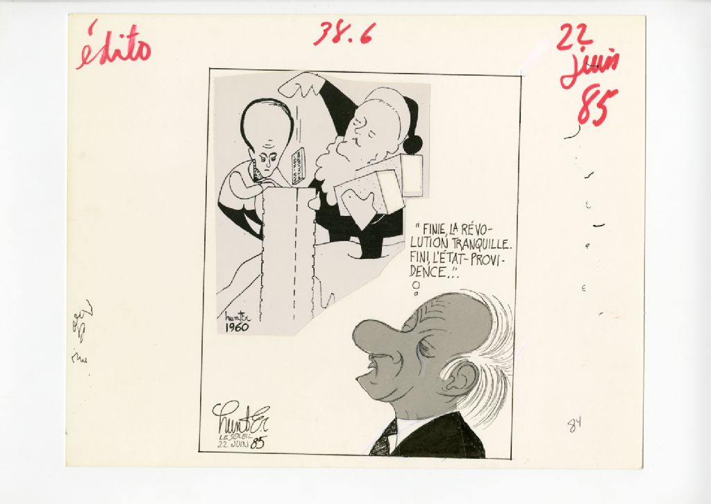 "Fini la révolution tranquille. Fini, l'état-providence...", 22 juin 1985, Archives nationales à Québec, Fonds Raoul Hunter, (03Q,P716,S1,P85-06-22), Raoul Hunter.