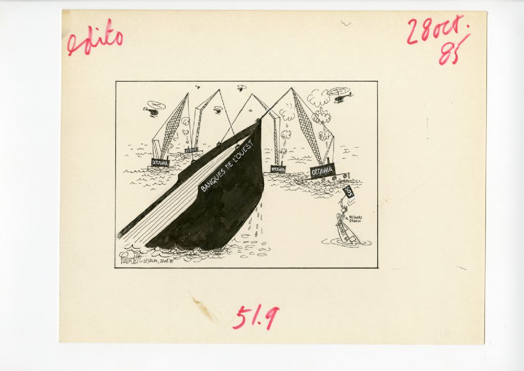 [Un paquebot sur lequel il est écrit ''Banques de l'Ouest'']