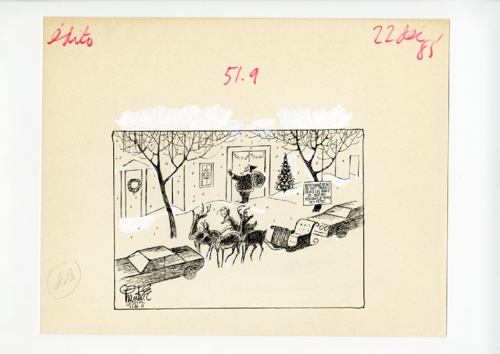 Stationnement de nuit permis dans les rues de Québec pendant le temps des fêtes., 22 décembre 1985, Archives nationales à Québec, Fonds Raoul Hunter, (03Q,P716,S1,P85-12-22), Raoul Hunter.