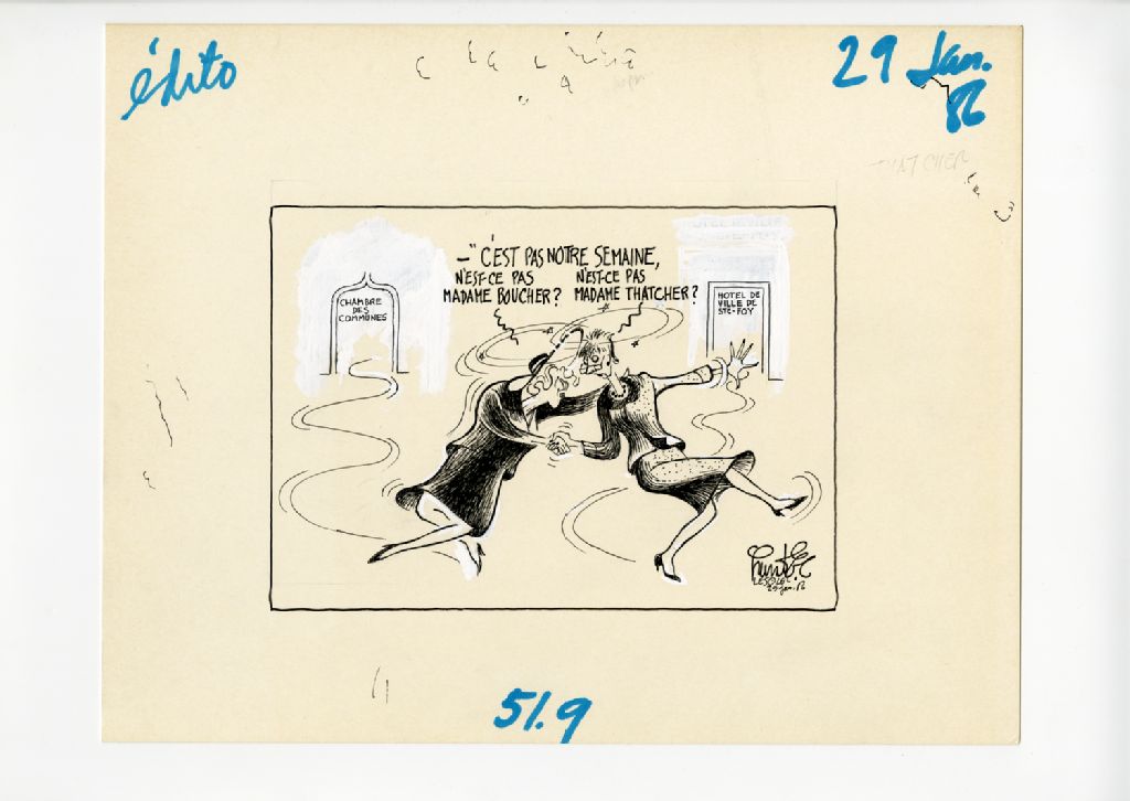 "C'est pas notre semaine, n'est-ce pas madame Boucher?" C'est pas notre semaine n'est-ce pas madame Thatcher?"