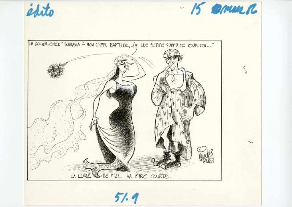La lune de miel va être courte. Le gouvernement Bourassa: "Mon cher Baptiste, j'ai une petite surprise pour toi..."