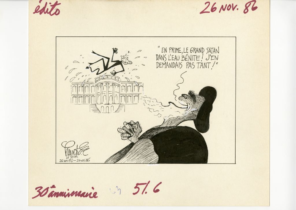 "En prime, le grand Satan dans l'eau bénite! J'en demandais pas tant!", 26 novembre 1986, Archives nationales à Québec, Fonds Raoul Hunter, (03Q,P716,S1,P86-11-26), Raoul Hunter.