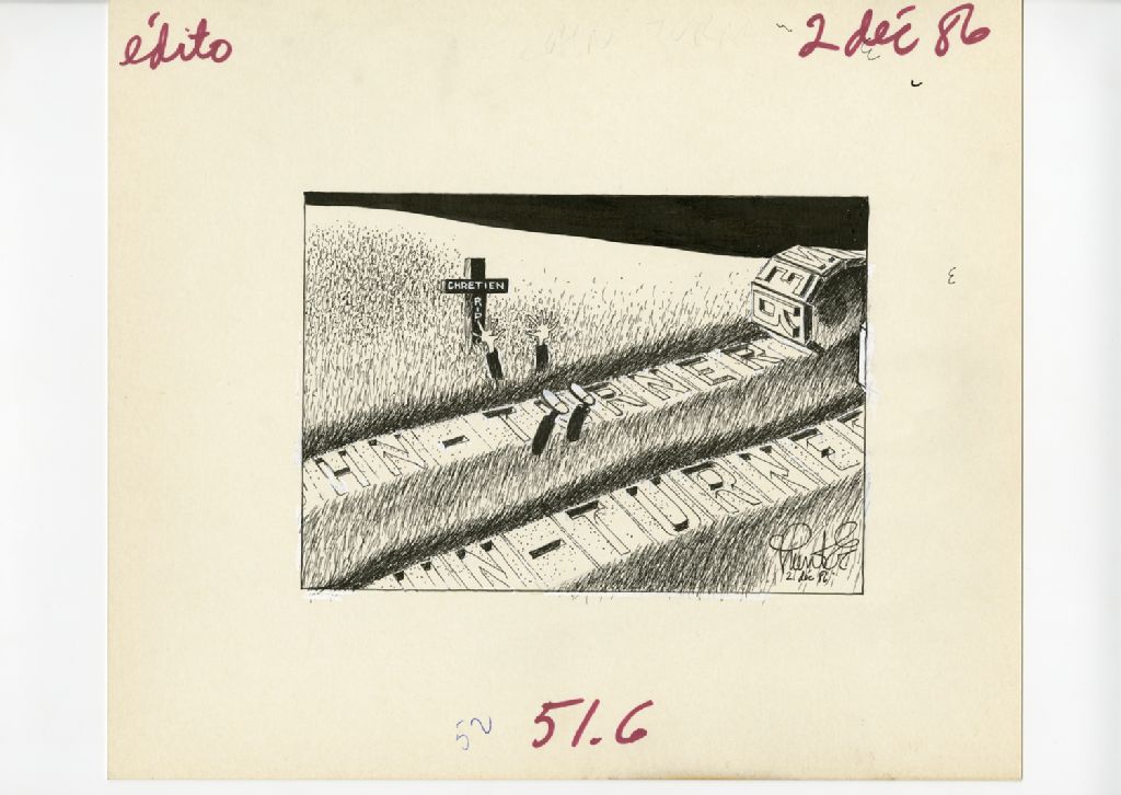 [Jean Chrétien se fait écraser par un rouleau compresseur qui écrit le nom de John Turner]