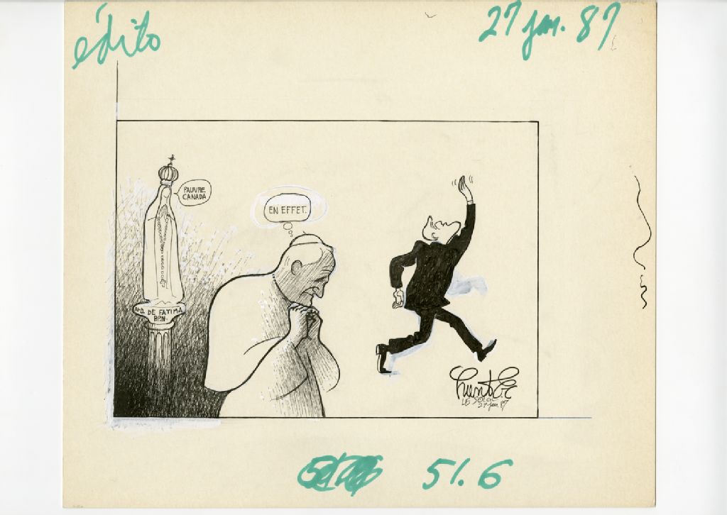 "Pauvre Canada." "En effet.", 27 janvier 1987, Archives nationales à Québec, Fonds Raoul Hunter, (03Q,P716,S1,P87-01-27), Raoul Hunter.