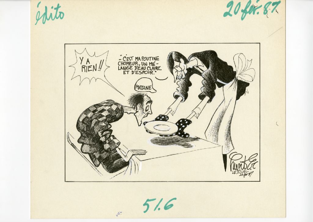 "Y a rien!!" "C'est ma poutine chomeur, un mélange d'eau claire et d'espoir."
