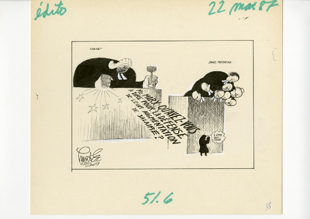 "Me Marx, qu'avez-vous à dire pour la défense de leur augmentation de salaire?", 22 mai 1987, Archives nationales à Québec, Fonds Raoul Hunter, (03Q,P716,S1,P87-05-22), Raoul Hunter.