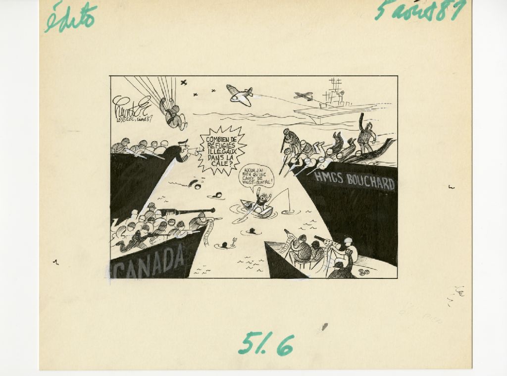 "Combien de réfugiés illégaux dans la cale?" "Aucun, j'ai rien qu'une caisse de vingt-quatre!"