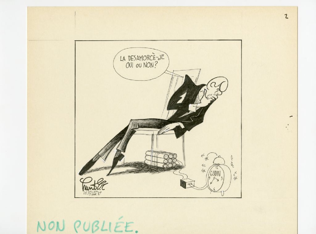 "La désamorcè-je oui ou non?", 11 novembre 1987, Archives nationales à Québec, Fonds Raoul Hunter, (03Q,P716,S1,P87-11-11-1), Raoul Hunter.