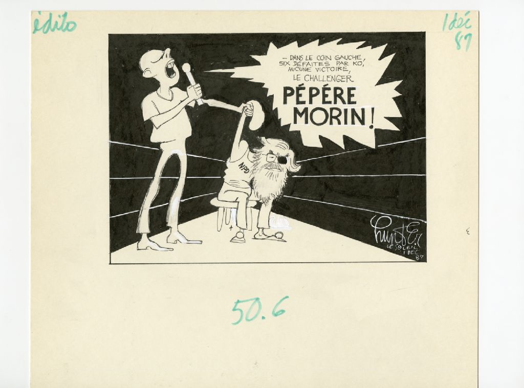 "... Dans le coin gauche, six défaites par KO, aucune victoire, le challenger Pépère Morin!"