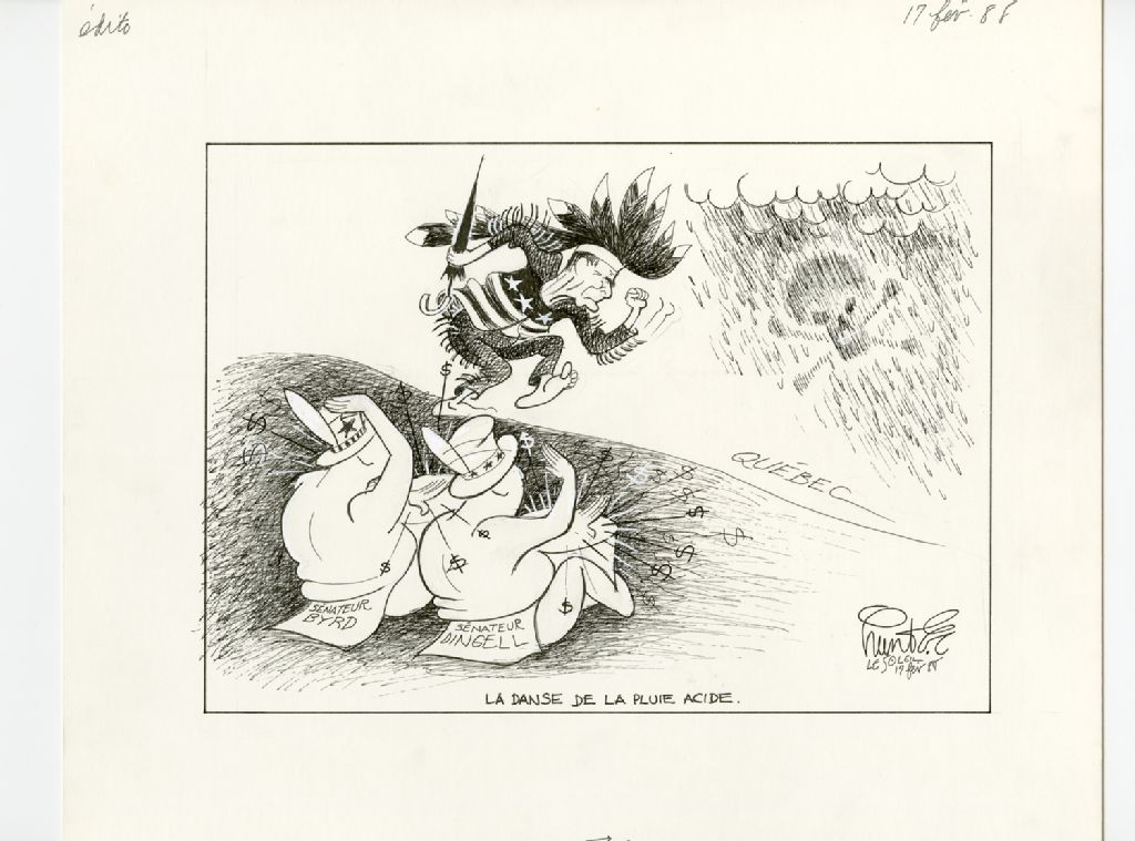 La danse de la pluie acide., 17 février 1988, Archives nationales à Québec, Fonds Raoul Hunter, (03Q,P716,S1,P88-02-17), Raoul Hunter.