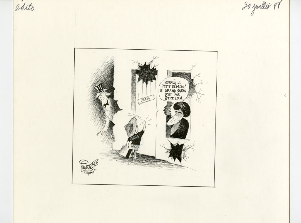 "Revoilà le petit démon! Le grand Satan doit pas être loin...", 20 juillet 1988, Archives nationales à Québec, Fonds Raoul Hunter, (03Q,P716,S1,P88-07-20), Raoul Hunter.
