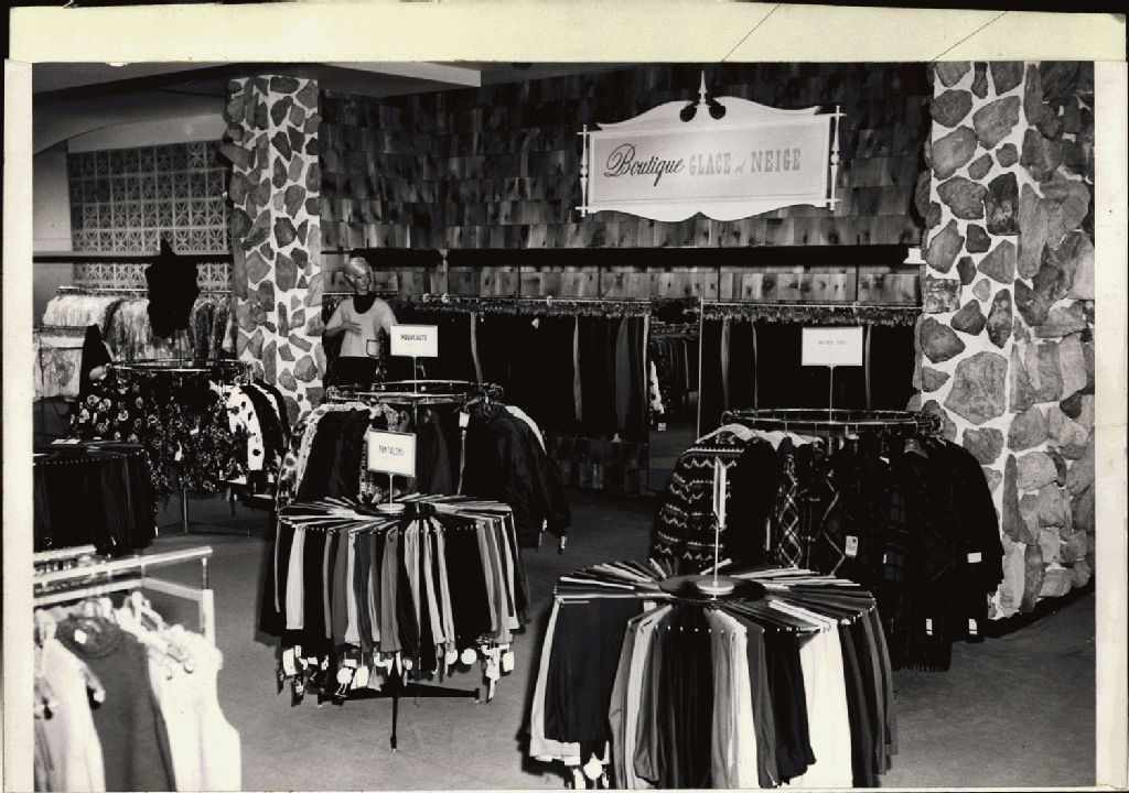 Sainte-Foy - Boulevard Laurier - Place Laurier - La Compagnie Paquet Incorporée - Rayon des pantalons pour dames et la boutique "Glace et Neige", avril 1964, Archives nationales à Québec, Fonds Paquet-Le Syndicat inc, (03Q,P726,S44,P126), Photo Moderne, Enr. Photographie Commerciale Quebec.
