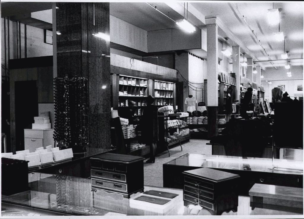 - Vue de l'intérieur, la mercerie pour hommes en réfection et les bijoux