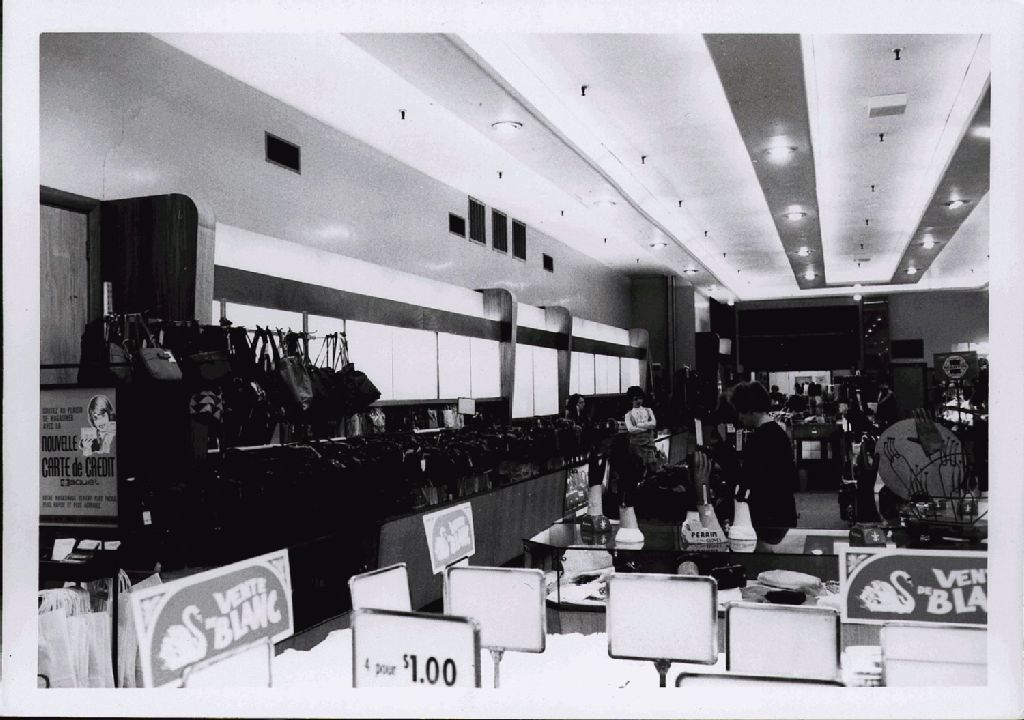 Vue de l'intérieur, les gants, bourses et accessoires pour dames, photographies du comptoir spécial #2, au fond le bureau de Poste