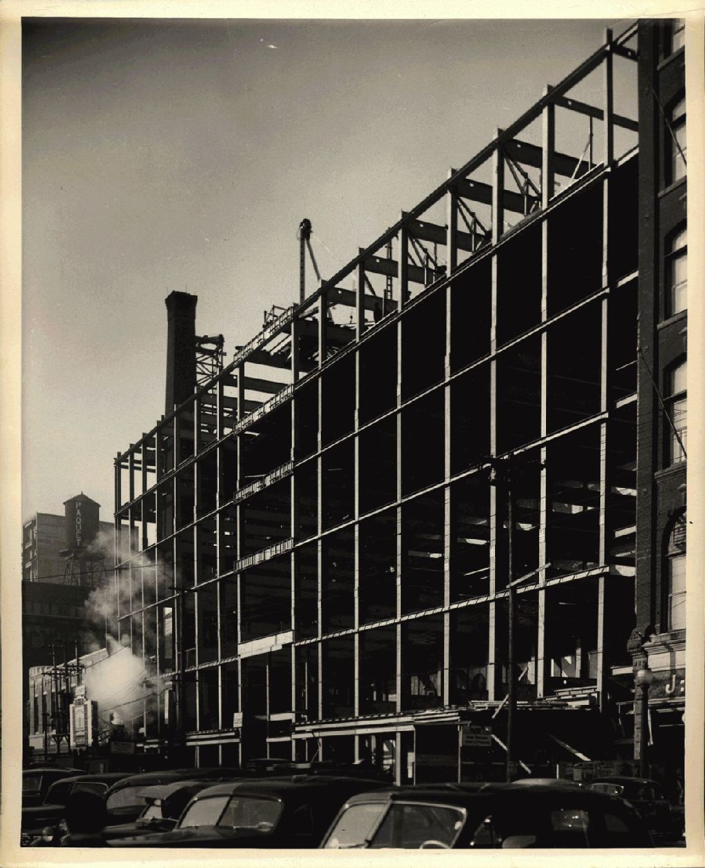 Quartier Saint-Roch - Boulevard Charest - La Compagnie Paquet Limitée - Édifice en construction, décembre 1948, Archives nationales à Québec, Fonds Paquet-Le Syndicat inc, (03Q,P726,S44,P56), Photo Moderne, Enrg. Photographie Commerciale et Aérienne Quebec.