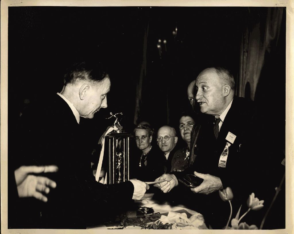 - Vue rapproché de la table d'honneur : Zéphirin Paquet, lors du dîner annuel des employés la compagnie Paquet à la salle de bal