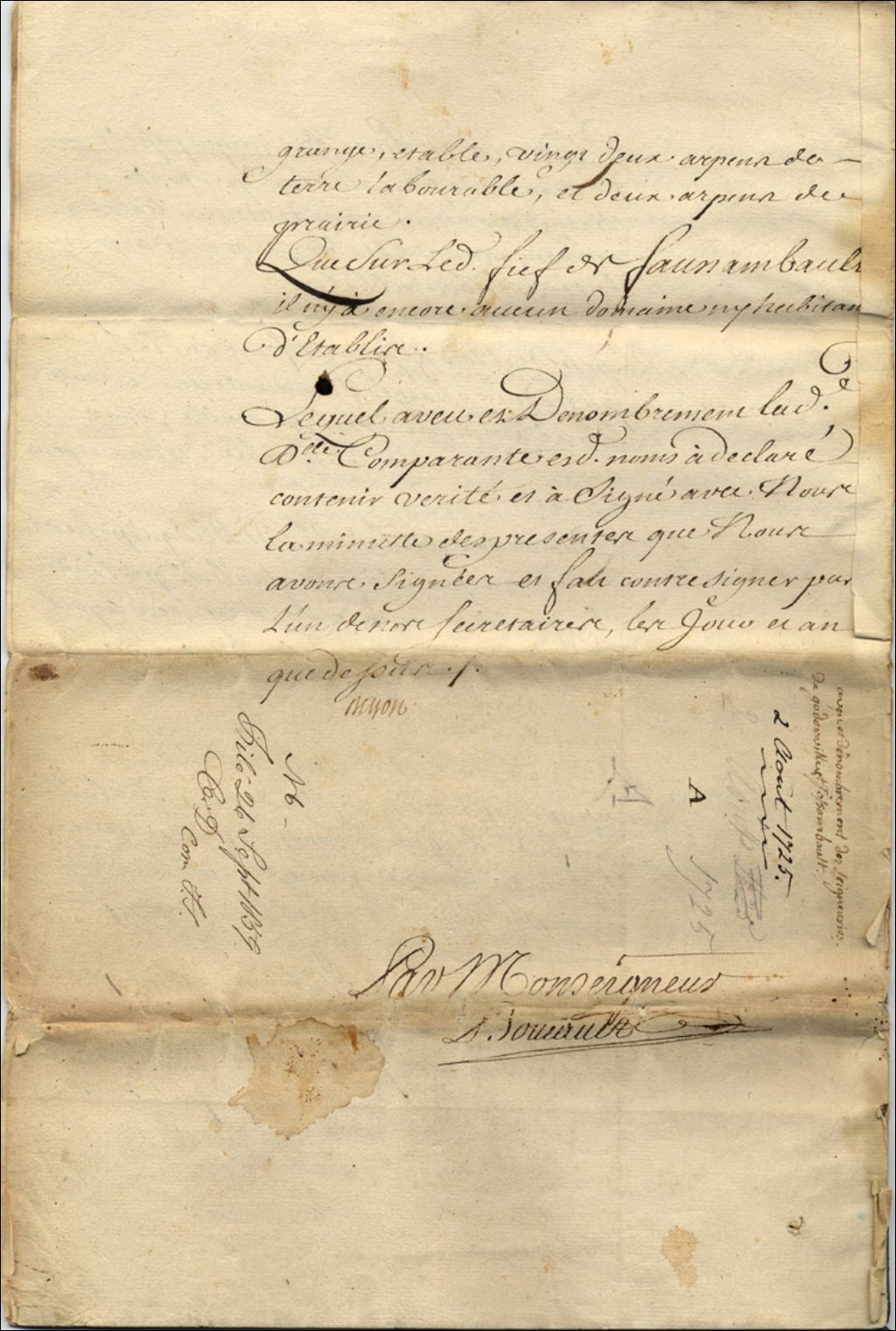 Aveu et dénombrement des Seigneuries de Gaudarville et Fossambault