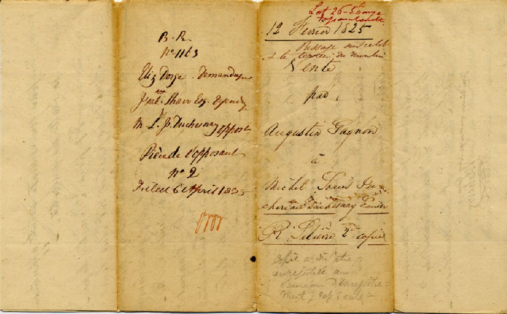 - Copie signée par R. Lelièvre, notaire, de la vente par Augustin Gagnon, cultivateur en la paroisse Sainte-Catherine, Seigneurie de Fossambault, à Michel-Louis Juchereau Duchesnay, écuyer, seigneur de Fossambault et Gaudarville, d'un lot de terre en la Seigneurie de Fossambault au lieu nommé "le Settlement de Saint Patris"