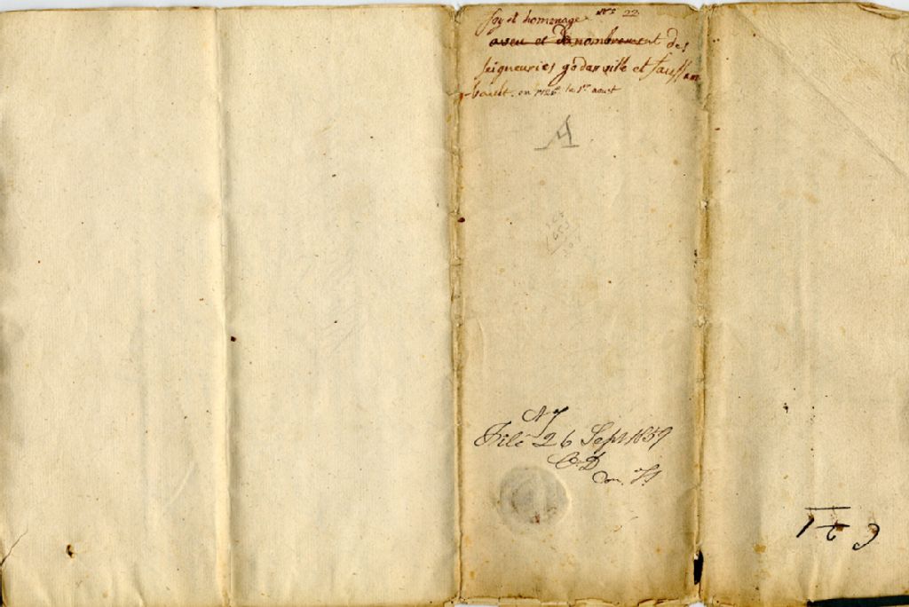 - Acte de foi et hommage des Seigneuries de Gaudarville et Fossambault, signé par Bégon