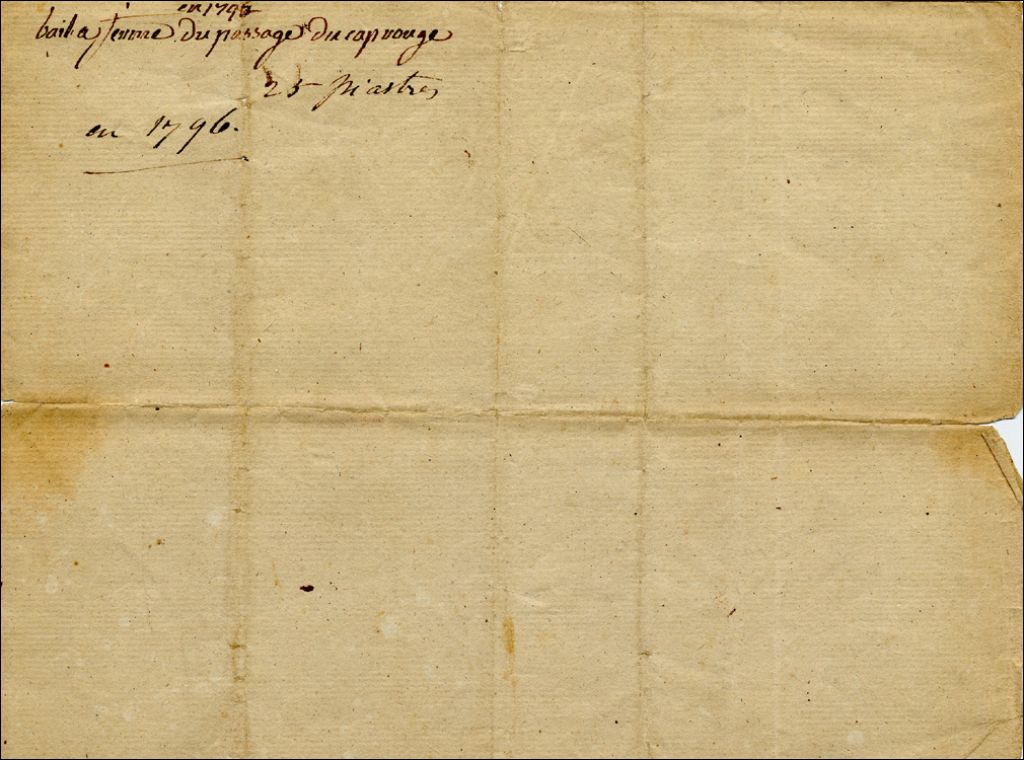 Bail à ferme à Martin Paquet du passage de la Rivière du Cap Rouge, Seigneurie de Gaudarville, avec la maison et autres bâtiments y appartenant, par Antoine Juchereau Duchesnay, Seigneur de Beauport et de Gaudarville, 6 novembre 1796, Archives nationales à Québec, Collection Pierre-Paul Côté, (03Q,P745,P7).
