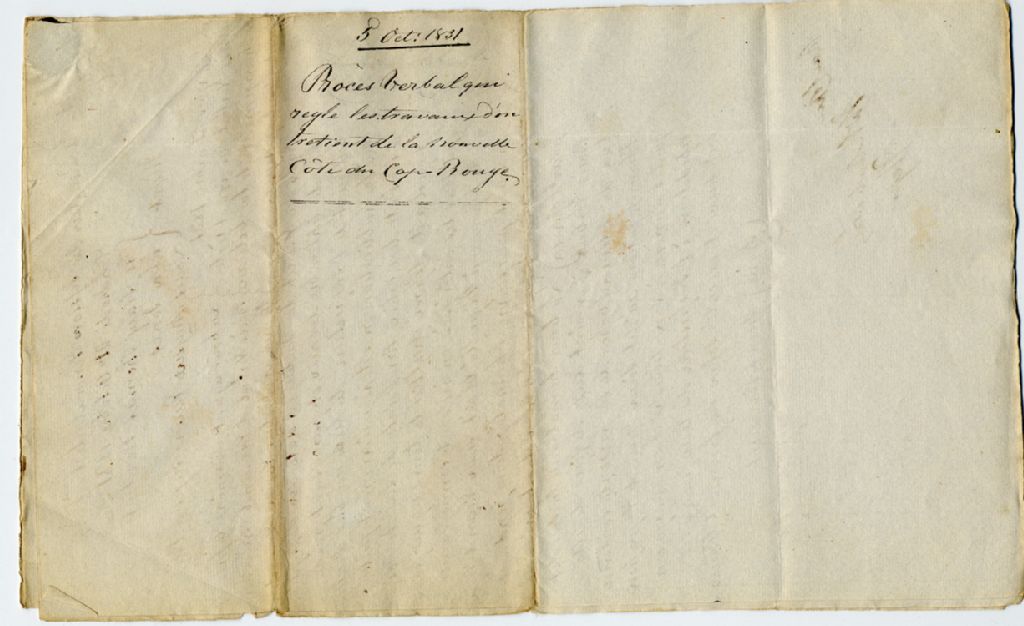 Procès-verbal qui règle les travaux d'entretien de la nouvelle Côte de Cap Rouge, signé par Edmund William Romer Antrobus, Grand voyer de Québec, 5 octobre 1831, Archives nationales à Québec, Collection Pierre-Paul Côté, (03Q,P745,P72).