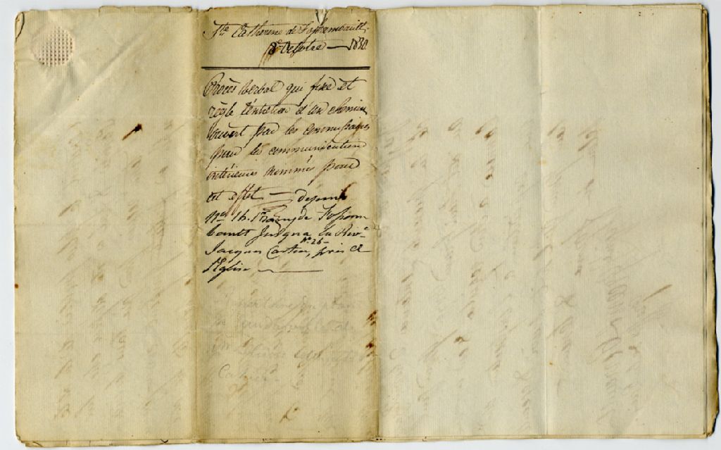 - Procès-verbal qui fixe et règle l'entretien d'un chemin, qui prend du chemin de front du premier rang de Fossambault et conduit jusqu'à la Rivière Jacques Cartier, ouvert par les commissaires pour les communications intérieures nommés pour cet effet, signé par Edmund William Robert Androbus