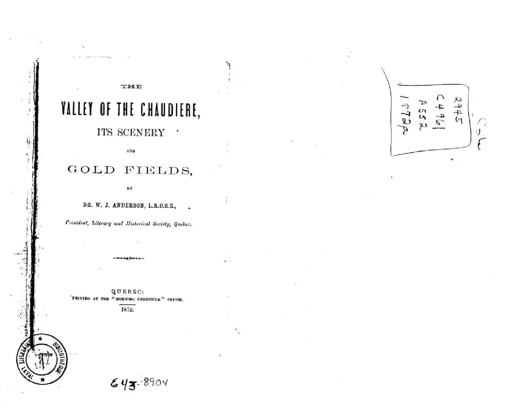 - The Valley of the Chaudiere, its Scenery and Gold Fields