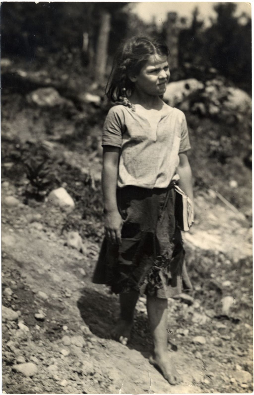 Fillette amérindienne marchant pied nue