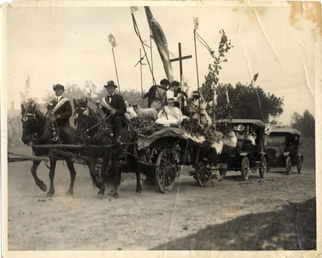 Char allégorique pour la fête de la Saint-Jean-Baptiste, [Vers 1923], Archives nationales à Québec, Collection Julienne Sioui, (03Q,P907,P48), Photographe non identifié.